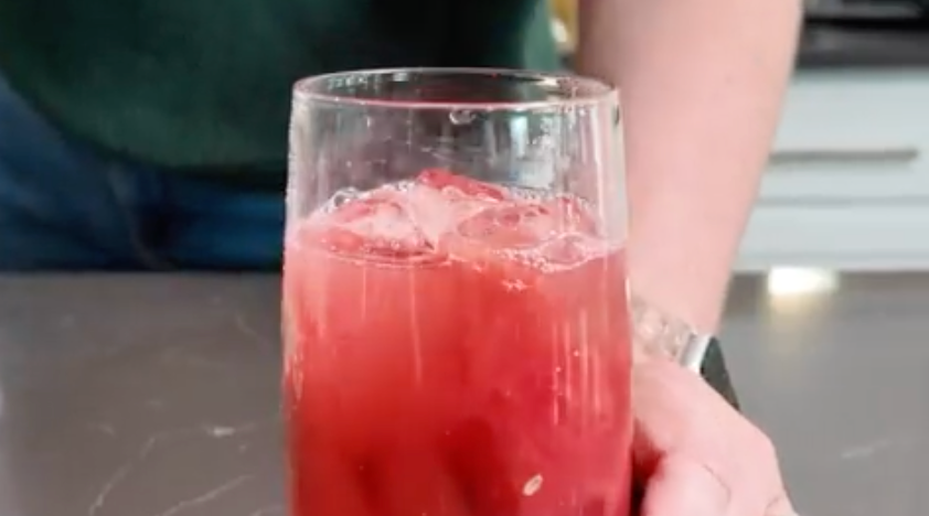 Add watermelon, mint, lemon juice, and Hydrate to a cocktail shaker or large measuring cup.
